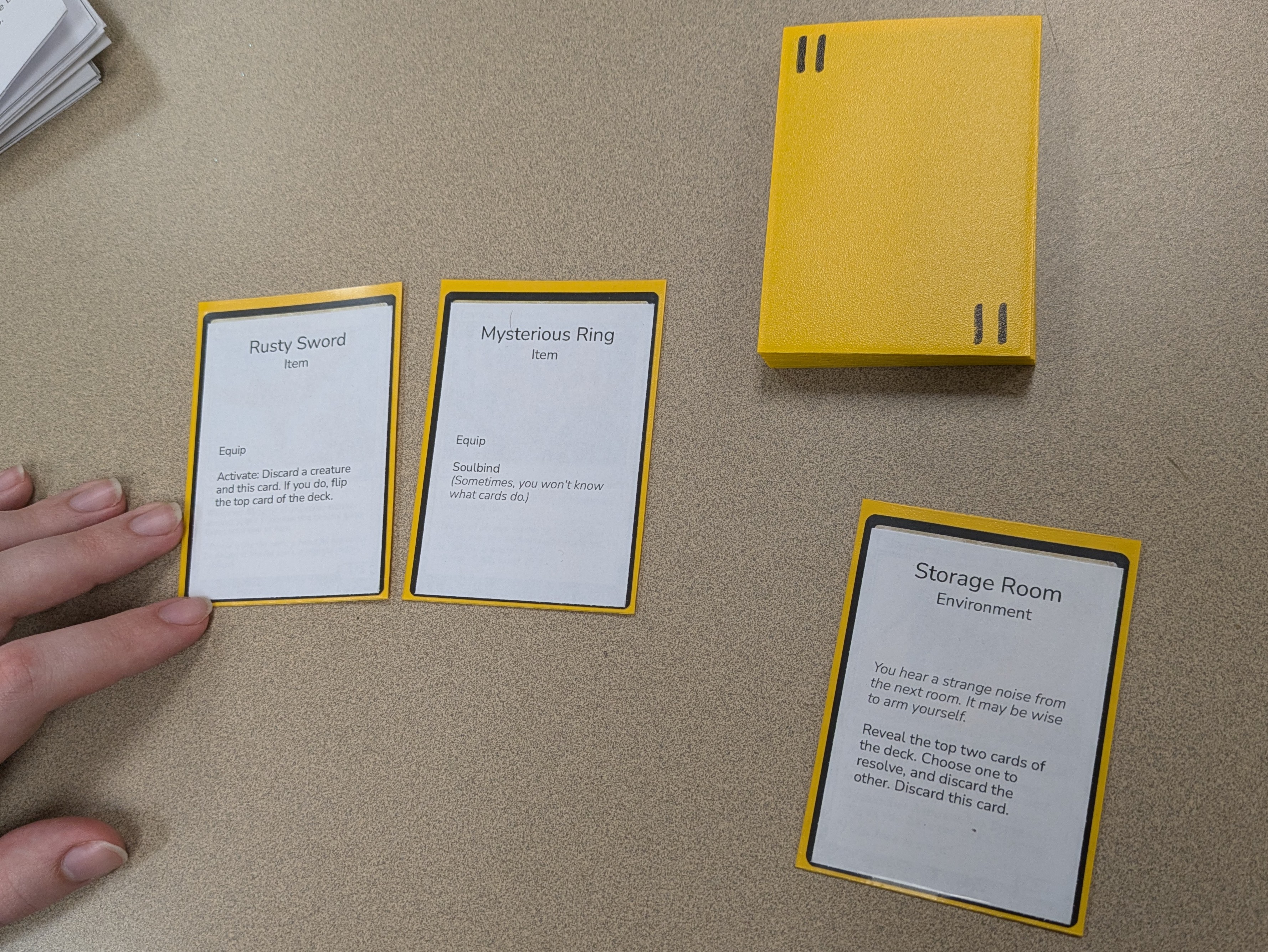 I originally considered making this a Twine game, however I think the physical aspect gives the player a level of control that is useful to the expereince of the game. It also helps to hide some of the puzzles -- there are common mistakes that I intended to be possible and that players made during playtesting, that the game accounts for. The real magic of this game is that you can make a mistake without realizing, and the game will know. Of course, it’s not possible to build a game immune to every mistake a player could make, but hopefully I’ve been thorough enough to catch a majority of them.